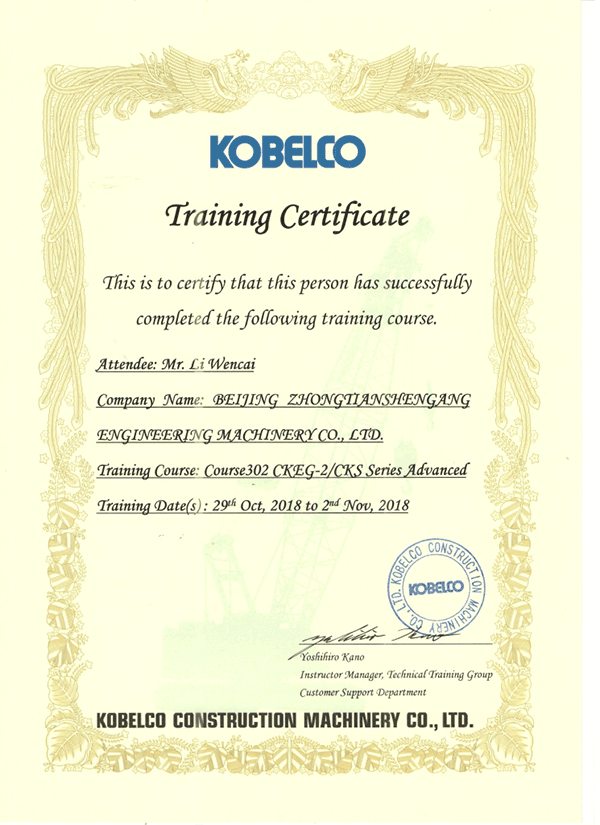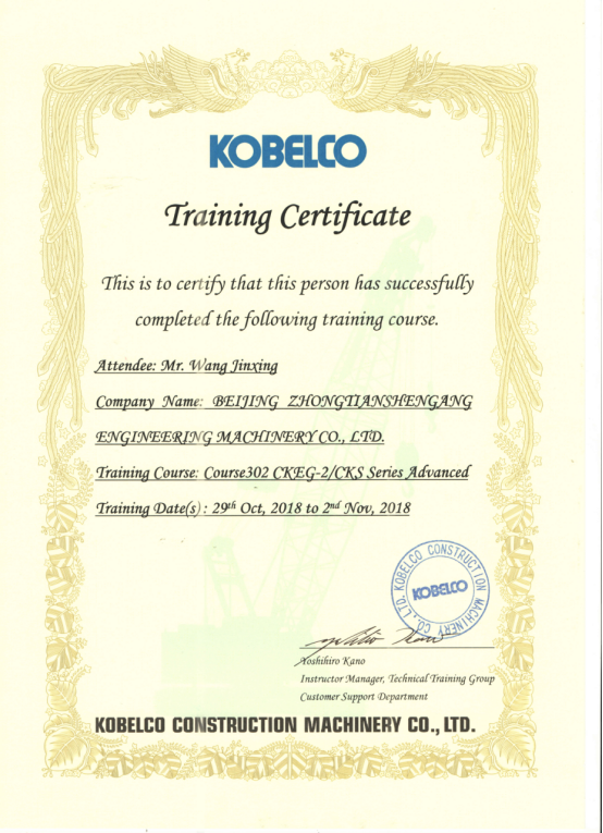 我公司的技術(shù)人員專業(yè)從事進口吊車的維修和服務(wù)工作多年,有著扎實的理論基礎(chǔ)和豐富的實踐經(jīng)驗,并多次與國外的技術(shù)管理人員合作,得到他們的充分肯定。我公司工程師均接受過日本神鋼建機株式會社的技術(shù)培訓(xùn)高級課程,并以優(yōu)異成績獲得神鋼認證的工程師證書。